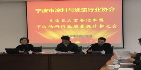 根据宁波涂协年度工作计划,促进宁波涂料行业质量提升项目建设进一步发挥技术、标准、品牌、管理等质量要素,带动宁波涂料行业向绿色、健康发展,3月16日上午,宁波市涂料与涂装行业协会五届五次常务理事会暨宁波涂料行业质量提升推进会在宁波市产品质量监督检验研究院B座5楼会议室召开,本次会议轮席主席为宁波宁波宇明工程防腐材料有限公司。宁波涂协监事会监事长钱兴泉列席会议,并对会议全程进行监督。会议由吴晓明秘书长主持。