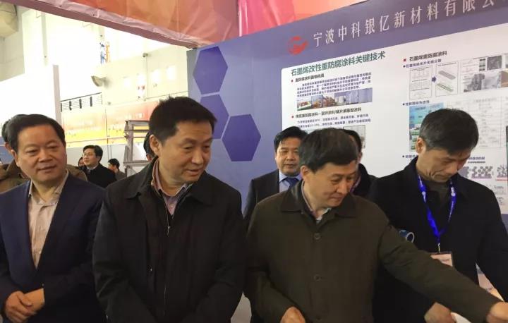 12月8日,中科银亿作为浙江省石墨烯制造业创新中心骨干企业亮相2017中国(宁波)国际新材料科技与产业博览会,工业和信息化部科技司副司长范书建、宁波市副市长陈仲朝、浙江省经济和信息化委员会凌云副主任等省市区领导莅临公司展区,与会领导对中科银亿的石墨烯改性重防腐涂料给予了高度评价。范司长表示我国海洋工程、能源工业、石油化工、航空航天、交通运输领域对重防腐涂料需求迫切,希望中科银亿进一步打造从材料制备到终端产品的全产业链,为石墨烯技术的扩散与商业化提供支撑,引领重防腐产业技术升级,做大做强我国重防腐市场。