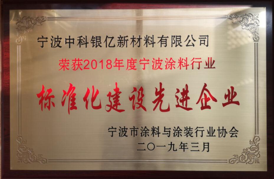 会上,通报了“2018年宁波涂料行业研发加工生产基地”考核达标企业,对“宁波涂料行业质量控制示范企业”进行了授牌,由会长、理事单位、监事会、党工组代表上台宣读了“宁波涂料行业诚信建设”倡议书,对“2018年先进单位和个人及宁波涂料行业优秀供应商”进行了颁奖仪式,宁波中科银亿新材料有限公司荣获2018年度宁波涂料行业标准化建设先进企业。