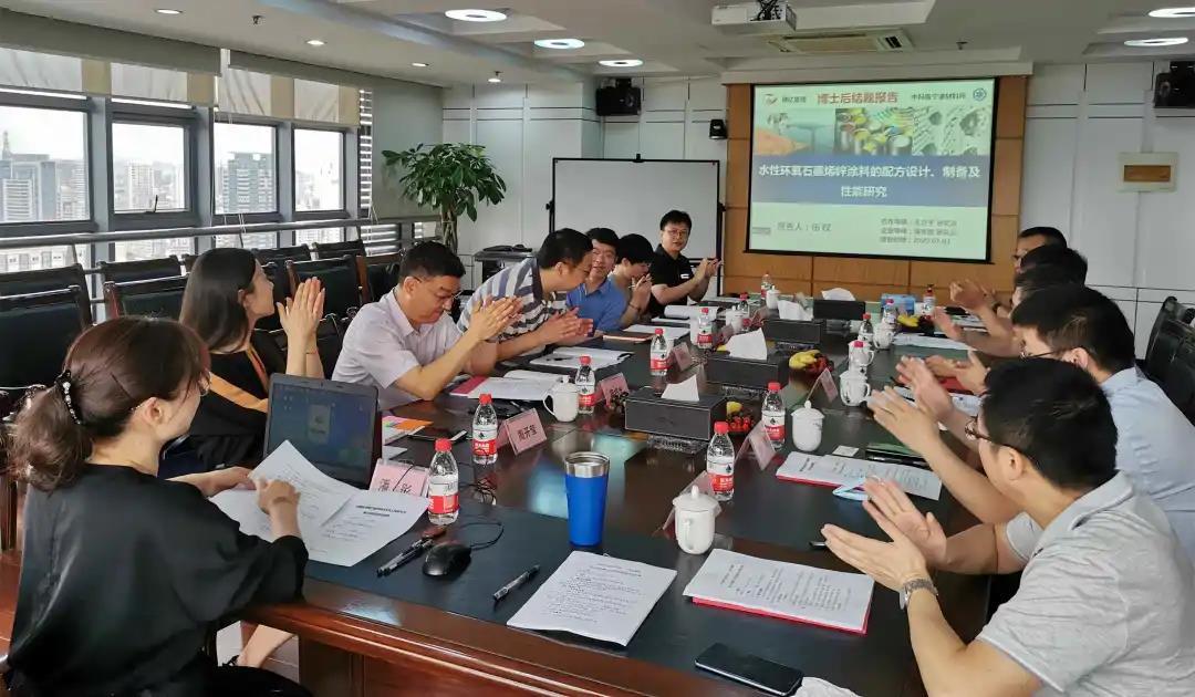 经过两个小时的评议,伍权博士的研究课题“水性环氧石墨烯锌涂料的配方设计、制备及性能研究”顺利结题。专家们一致认为,未来海洋工程与“一带一路”重大工程对环保型水性防腐涂料具有迫切需求,伍权博士针对以上需求开展水性涂料的组合设计、工艺配方及初步应用工作,工作内容丰富,方案科学合理,已在配方设计及防腐性能研究方面取得创新性成果,研制的配方涂料在未来工程上有很好的应用价值和前景。