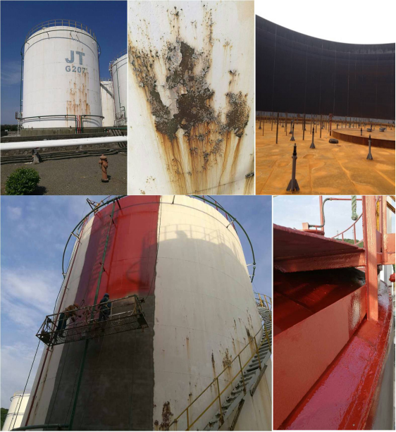 2500 M3储油油罐涂装前照片VS涂装后效果图